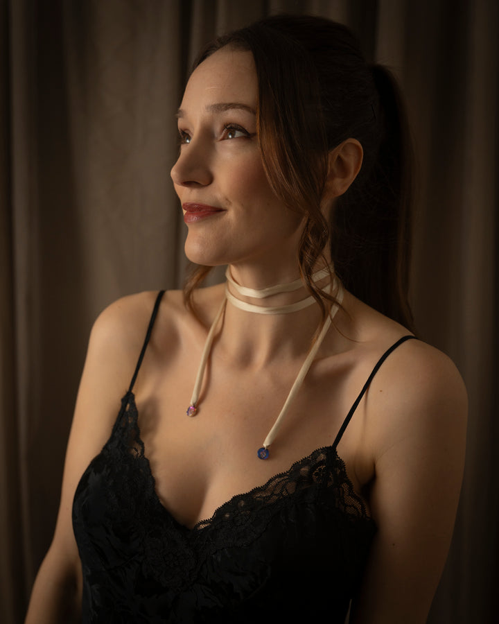 Our silk rouleau cords designed to be worn as you wish, at the neck, on the wrist, or in the hair. Made from remnant 100% silk charmeuse and georgette, finished with hand-selected vintage beads. Limited editions by nature.